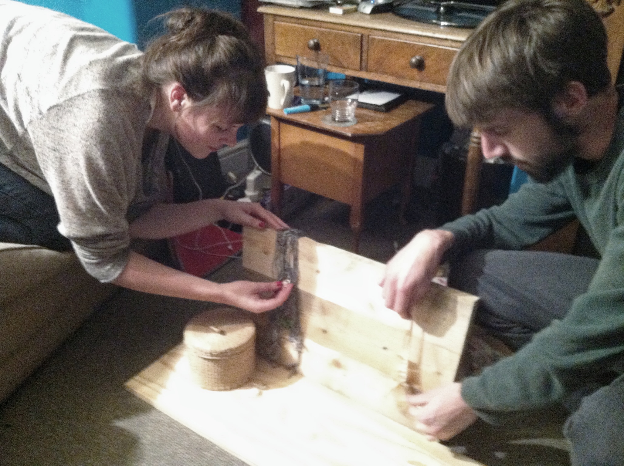 My trusty recipe testers; my boyfriend Richard Kieß and the awesomeness that is my friend Helen Piercy were tasked with creating a set on which the finished dish could be photographed. They had about 10 minutes and could only use what they could find in our studio.