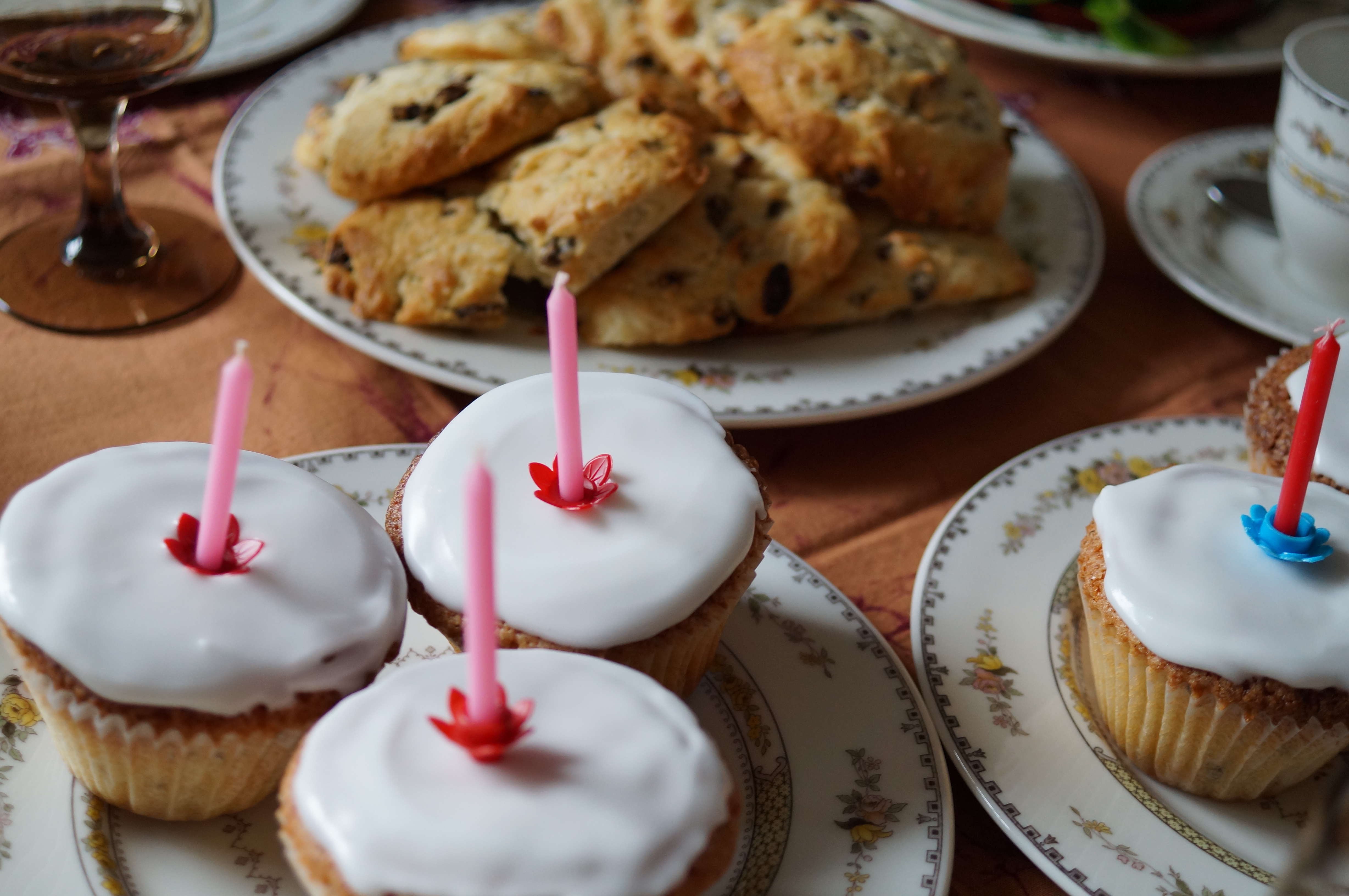 Finally; the Birthday cake. Mum and Dad are still swamped in festive leftovers, there’s over half a Christmas cake still knocking around so I thought making a whole sponge cake would be decidedly unhelpful at this point. Instead I made individual muffin sized sponges, flavoured with caraway seeds and topped with lemon icing. A single candle in each one signified the celebration.
