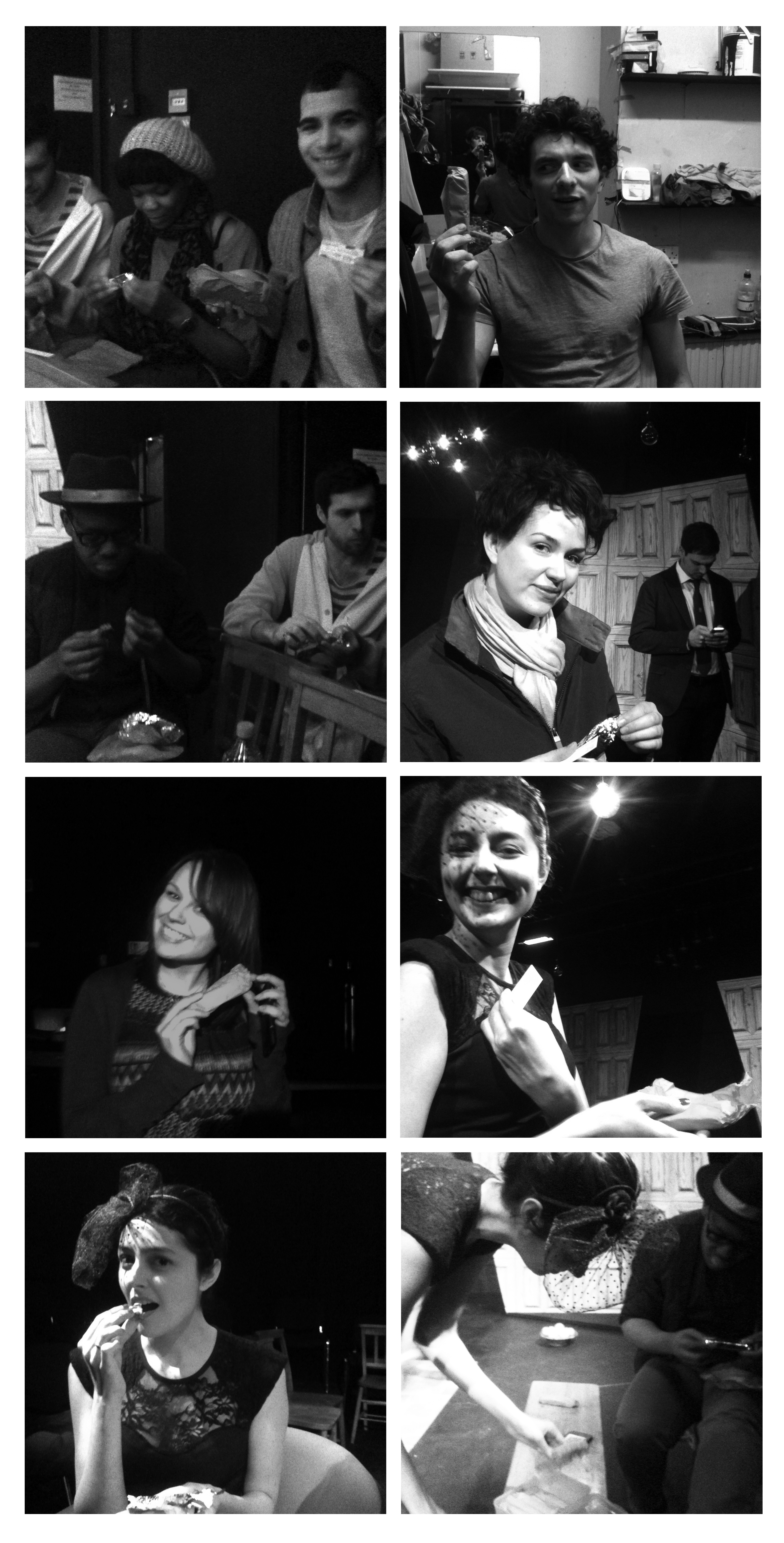Rich very kindly took a few snaps on his phone of the cast and crew backstage munching on the cereal bars…or posing with them…perhaps a bit of both!
