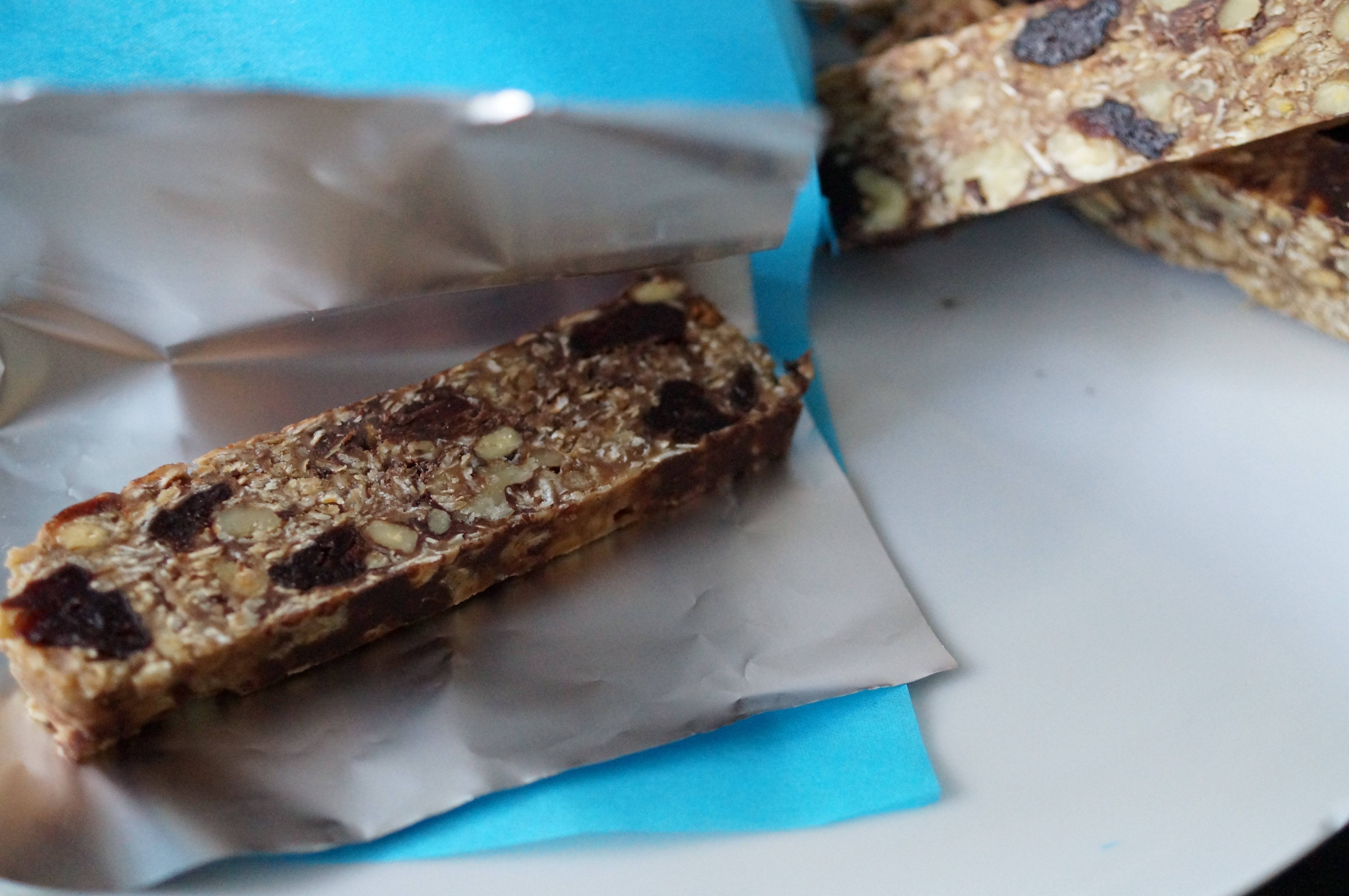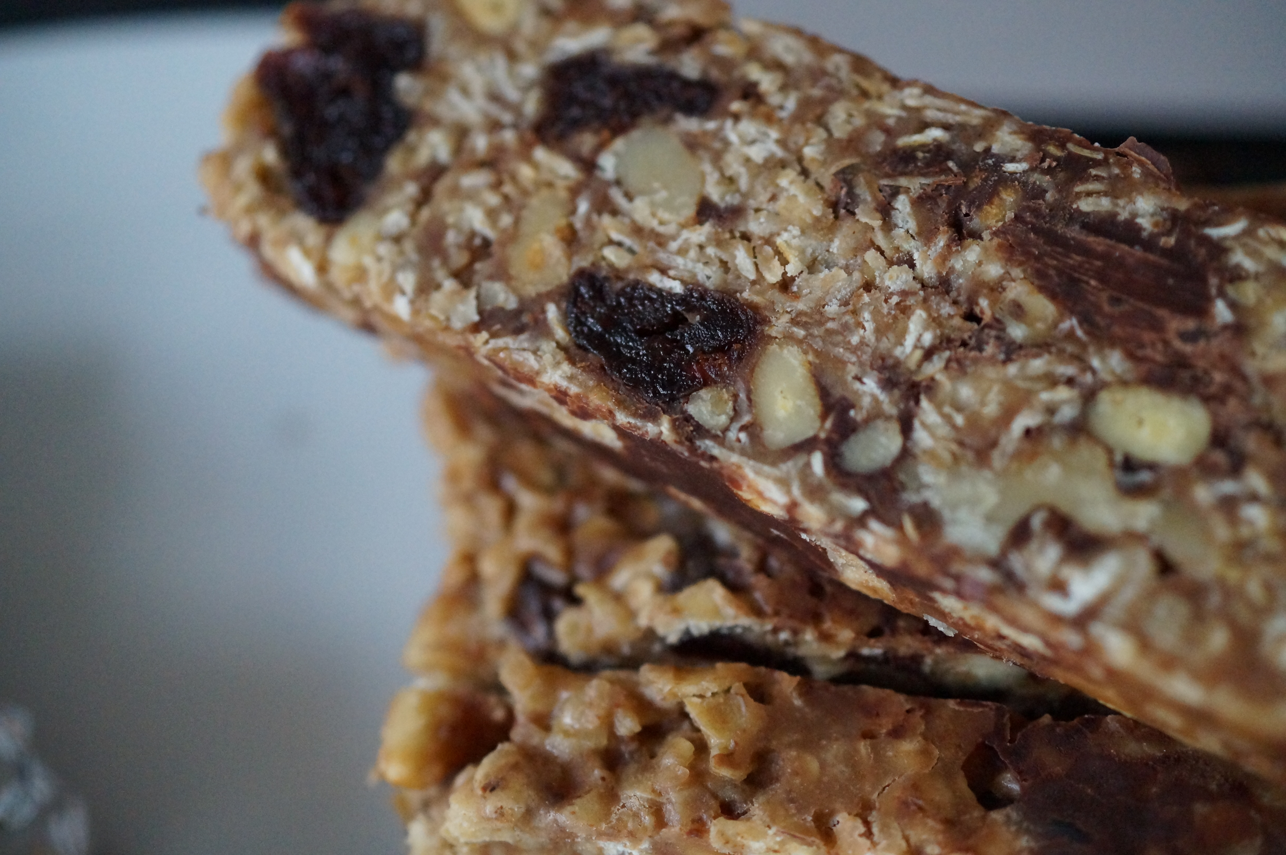 Packed full of oats, very dark chocolate, pine nuts and dried cherries I hoped this homemade snack would at least make a change from boost bars & mountain dew.