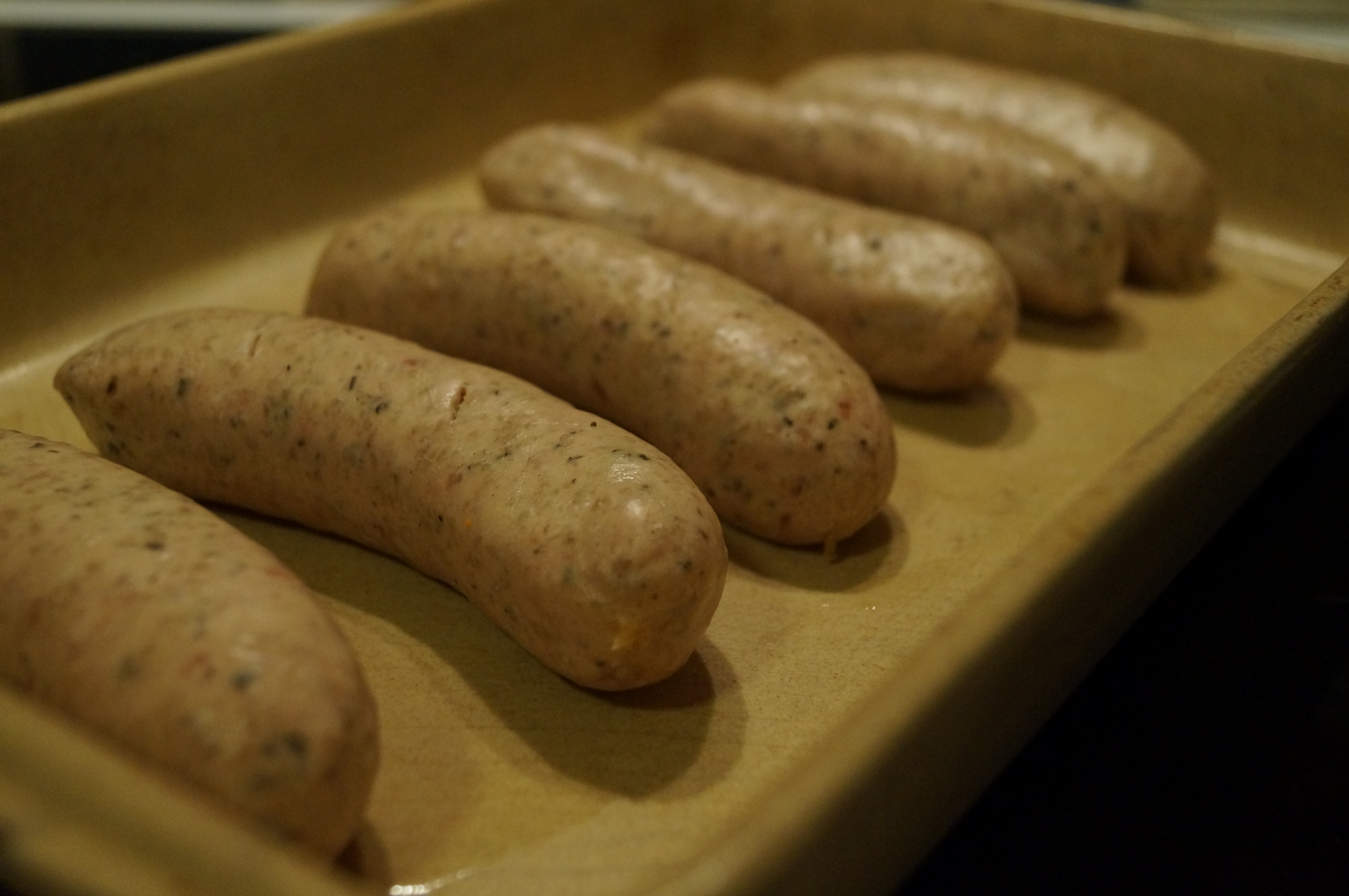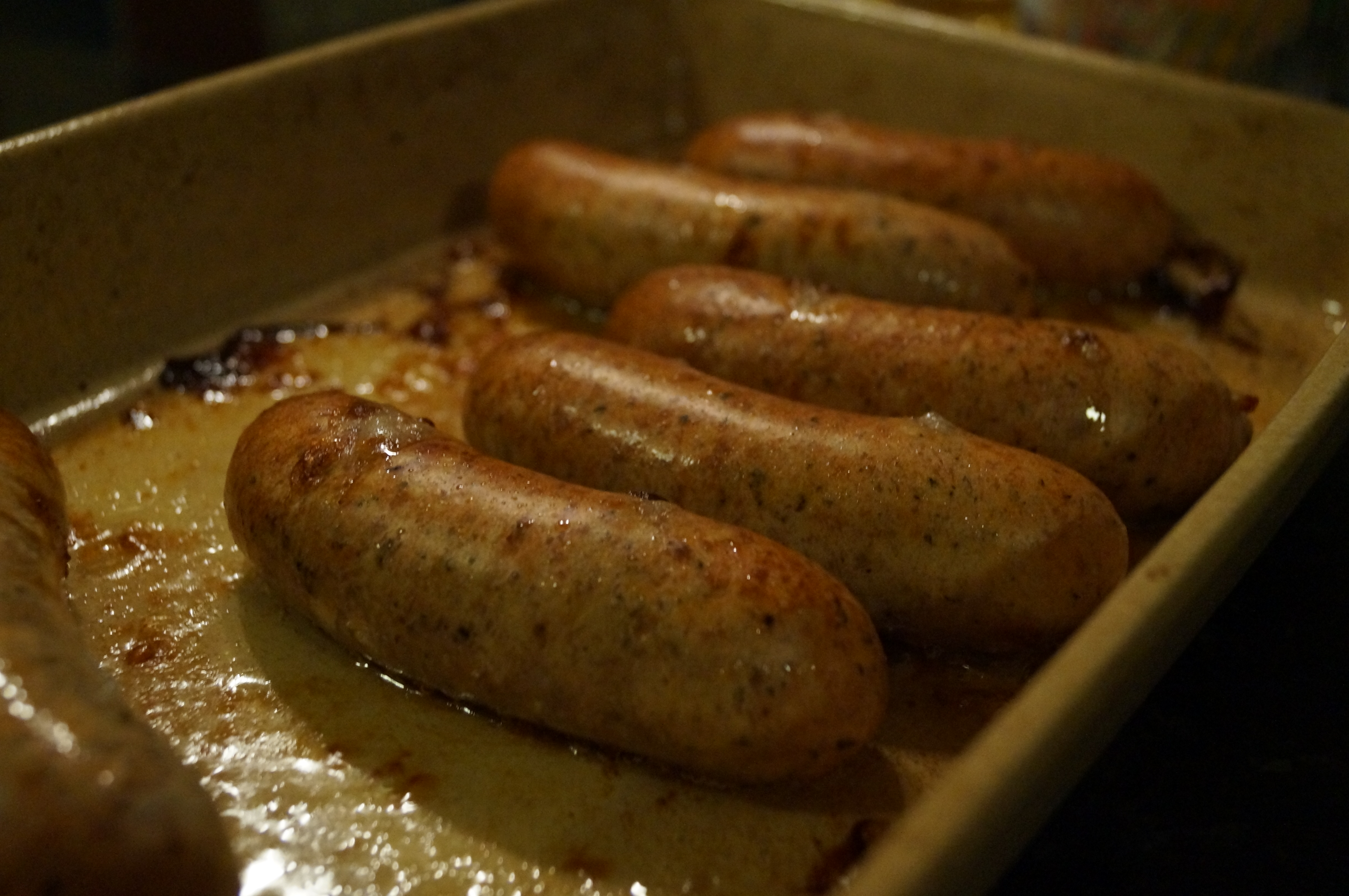 4) Bake the sausages in the sunflower oil for 20 minutes in the oven,