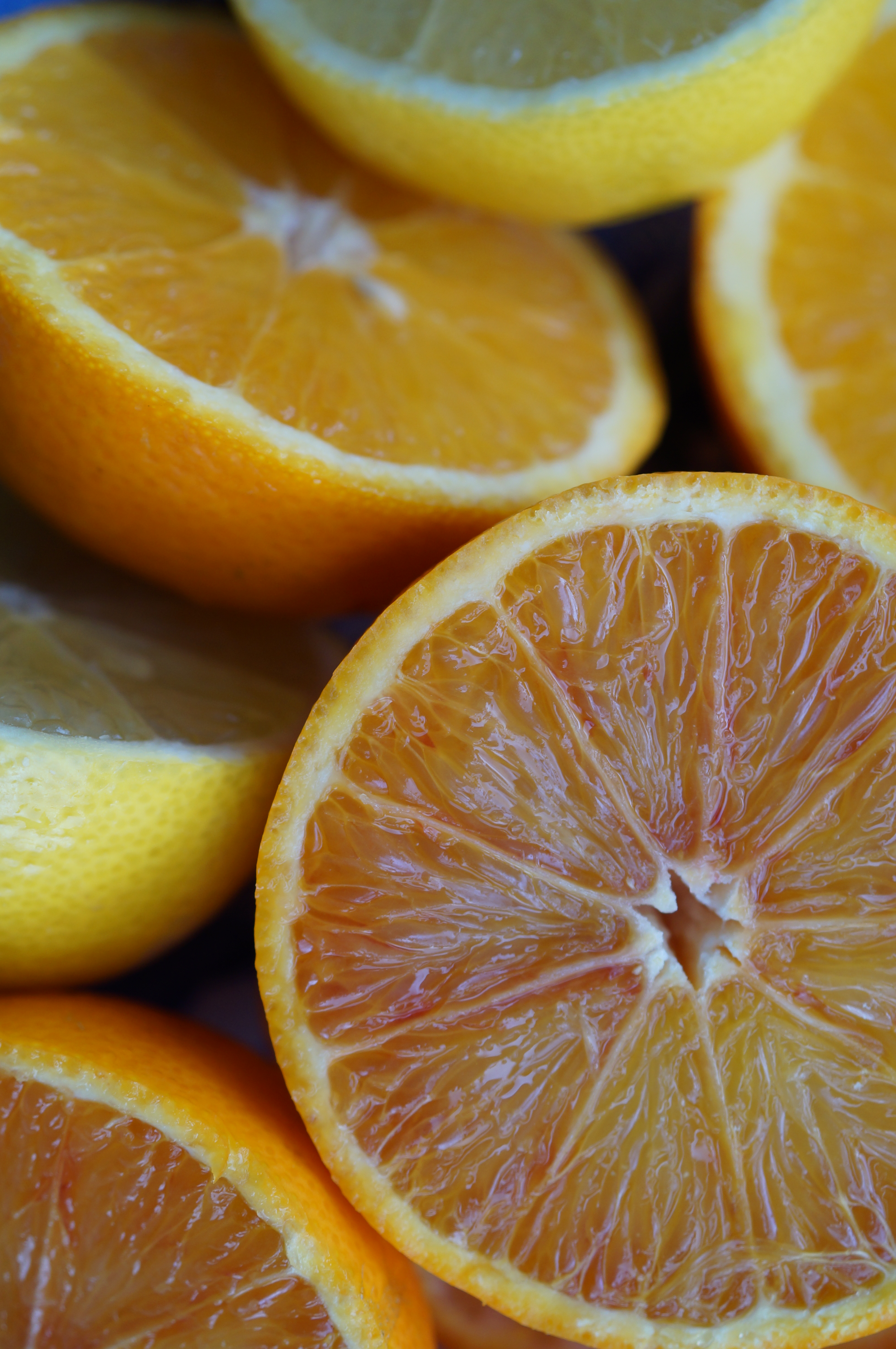 1) The first step is to prepare the fruit. Cut each orange or lemon in half and squeeze out all the juice into a bowl. Then turn the fruit halves inside out so you can pull the flesh away from the peel. Put everything except the peel into the bowl with the juice.