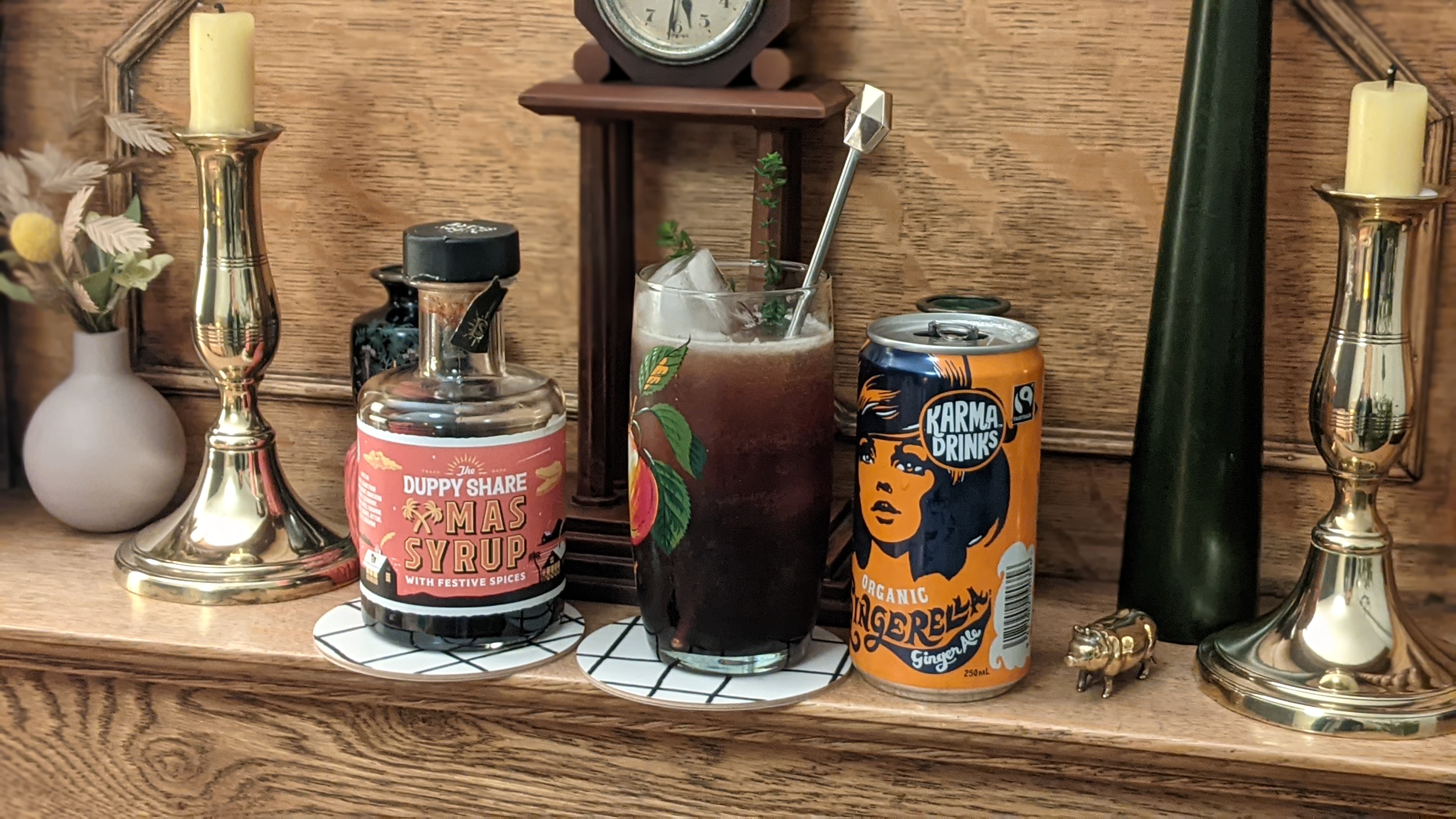 We have a lot of drinks. Occupational hazard of two drinks writers living under the same roof, but sometimes bottles get a bit lost in the mix. Snuck at the back of the cupboard, shamefully gathering dust was a bottle of Xmas Syrup from The Duppy Share. This was sent to me I think as part of a promotional pack in 2020, yikes. But looking at it, the ingredients were not a million miles away from the rum syrup we make in our book. So I found our dark and stormy soda recipe (pg 111) and, using this pre-made syrup, put one together. The syrup was still fine, though I’m not sure it’s on sale anymore, soz. Using it was a sweet shortcut that meant it didn’t go to waste. Our cocktail recipe also contains soda water, ginger beer (or ginger ale), lime juice and fresh thyme. It is based on the classic dark and stormy cocktail, though with the Xmas syrup it came out a bit more like a rum and coke but I’m not complaining.