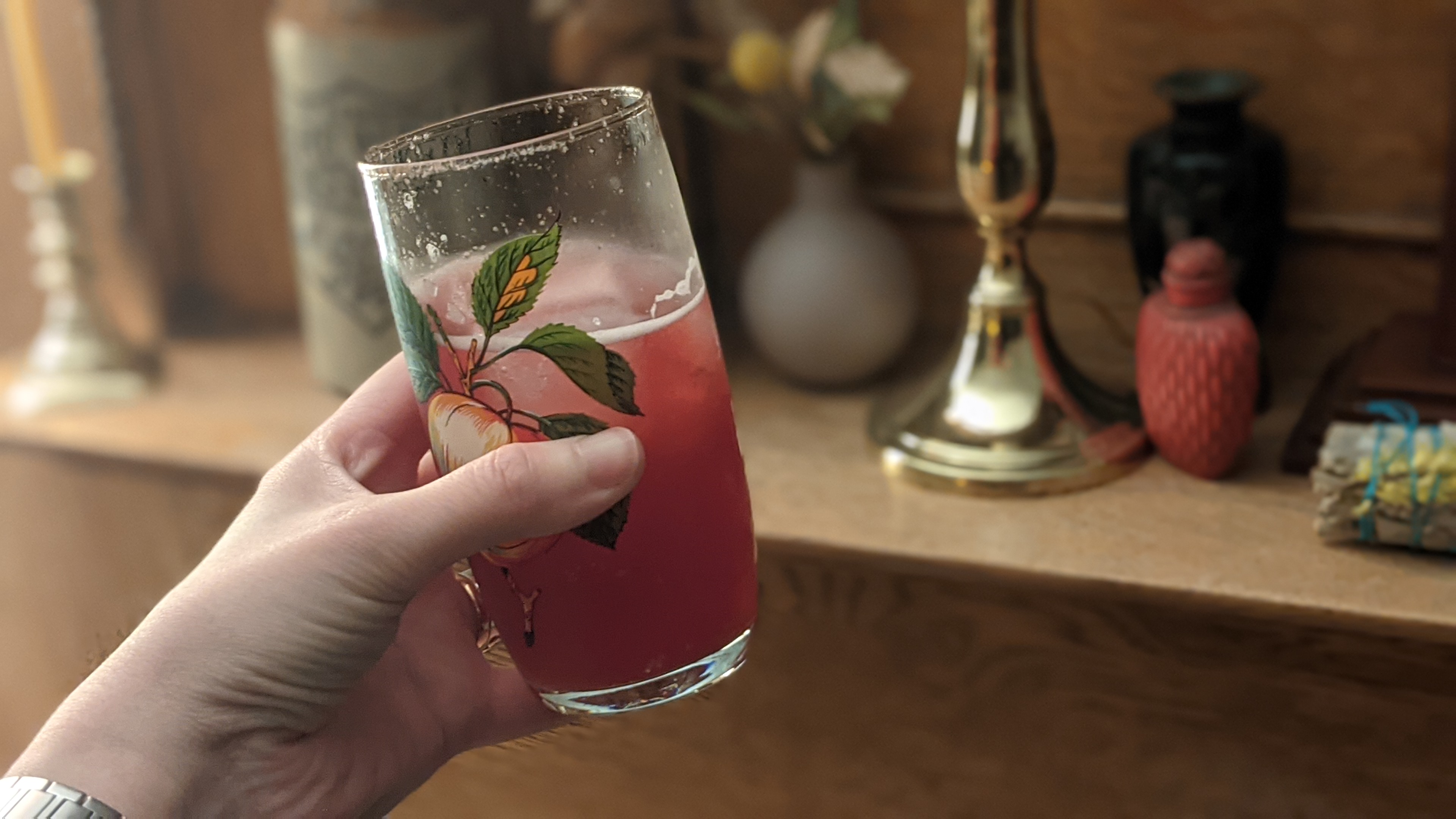 The following evening I tried serving it in a quick cocktail – 30ml highpoint ruby aperitif, 30ml of my mock rosé shrub cordial from last week and topped up with tonic water, over ice. This was sooo good that I didn’t get the glass to the fire surround before I drank most of it. I think the highpoint benefits from a bit of extra sweetness from the tonic, and it blends so well with other flavours. Very keen to experiment with it more as the weekend kicks in.
