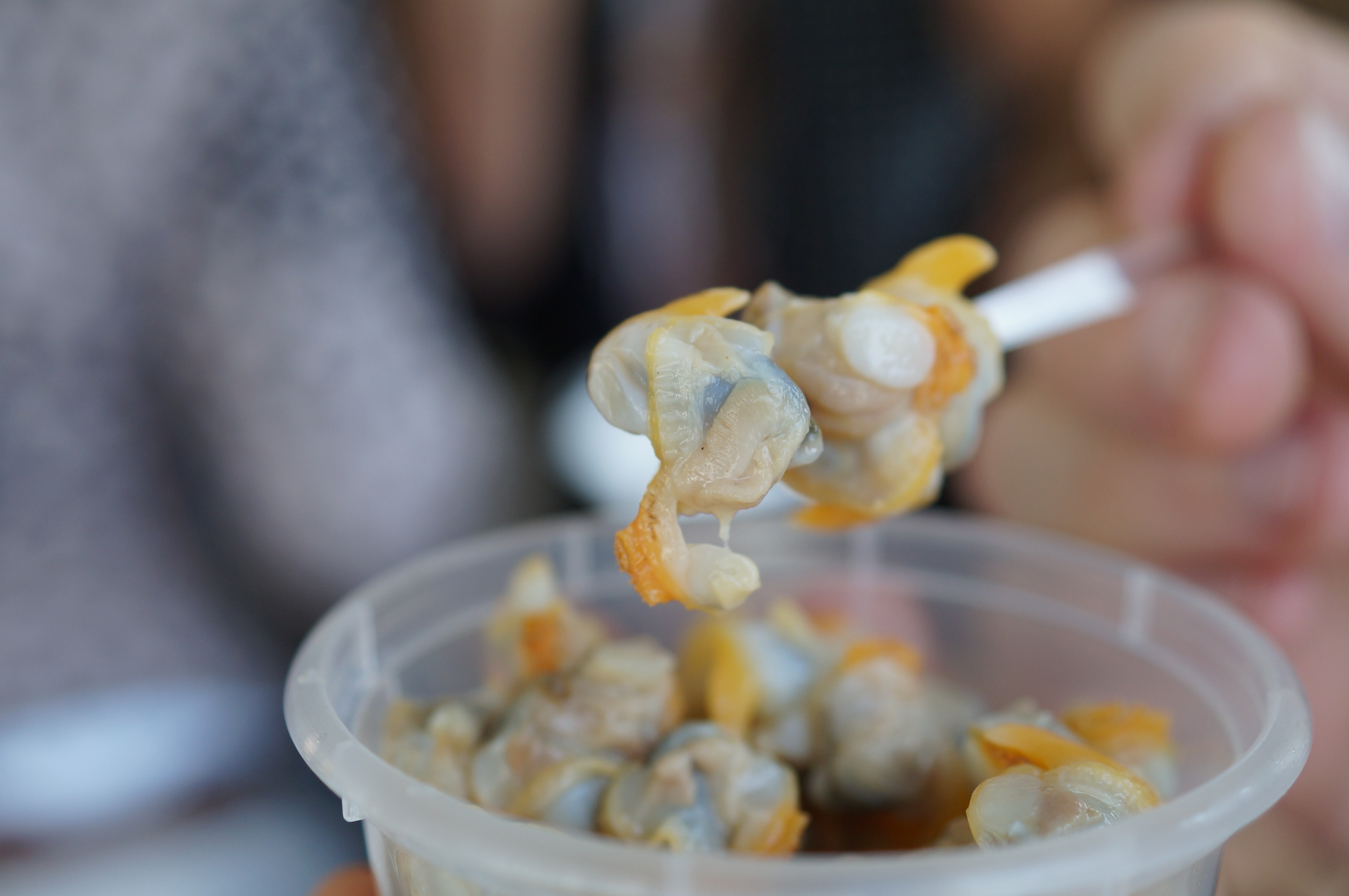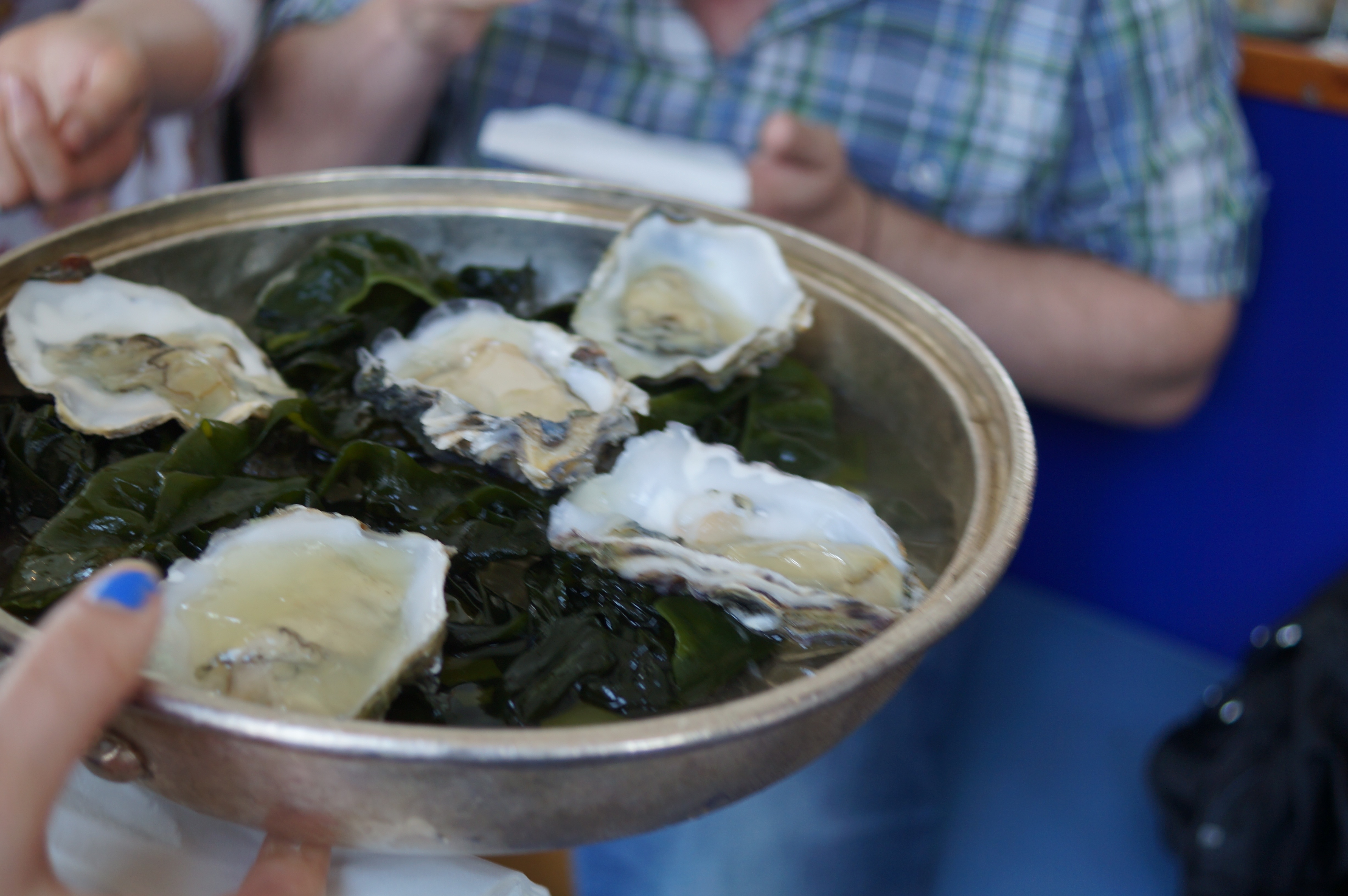 Coopers had arranged for some really lovely waiting staff who shuffled along in precarious zigzags carrying huge platters of canapés. The first were Hollowshore Oysters with shallot vinegar and Tabasco jelly followed by a seemingly endless supply of freshly shucked ones. Both were delicious.